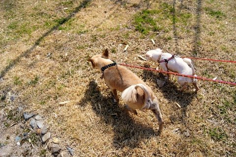 앞장서서 여유롭게 산책을 즐기는 심바