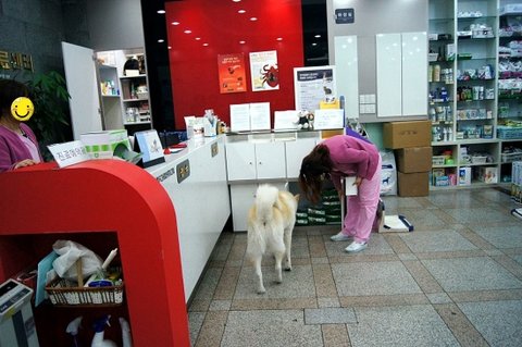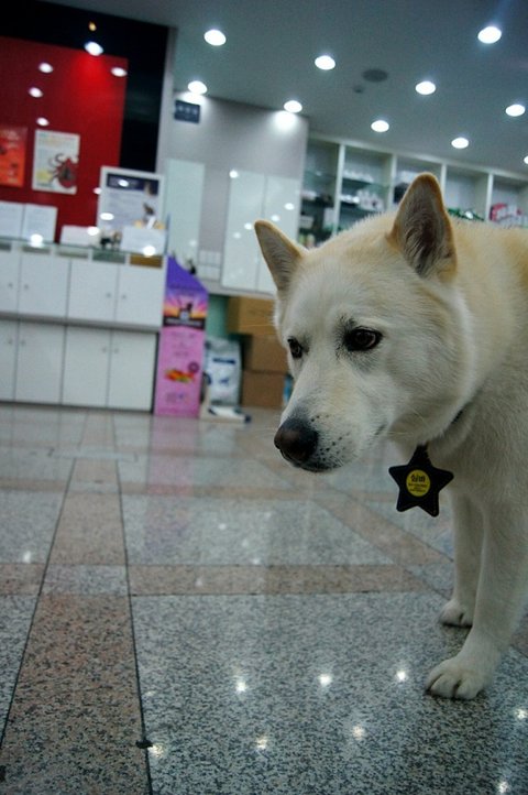 산책 나오자 마자 동물병원에 놀러가려나 봐요.