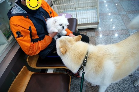 말티친구와 인사중인 마이