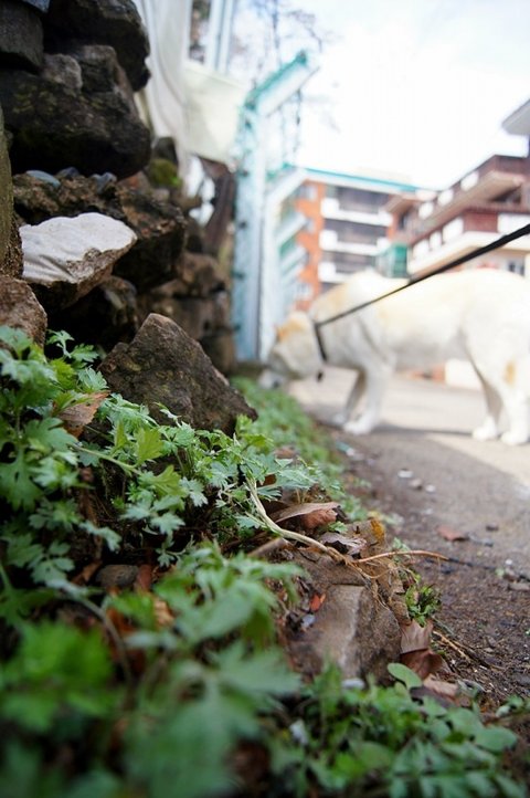 돌담길에 핀 잡초와 심바