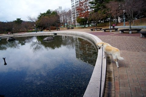 잉어연못 앞으로 다가간 심바