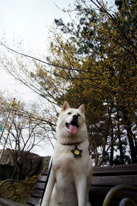 ㅋㅋㅋ벤치에 앞발 올리고 공기를 느끼다가. 베헷..