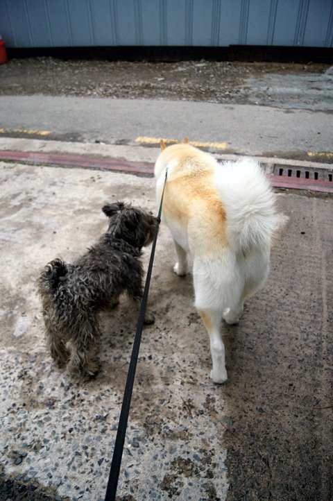병원에서 체중도 재보고 마이랑 인사도 하고 놀다가 다시 산책을 시작했어요