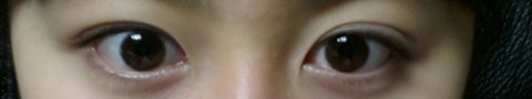 렌즈안끼고 화장도 안한 생 눈이구요,쌍꺼풀이 너무 진하고 눈만 큰 편이라서 친구들이 부담스럽다그래서요.