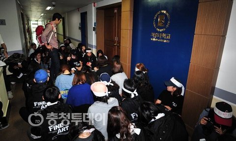 하여 일파만파 수도권 및 전국의 미술가들, 미술단체와 규합하여 이 사태에 대응할 것이며 학과의 공공성은 동문들의 합의 없이 일방적으로 잣대를 두고 마음대로 폐지 할 수 있는 것이 아님을 알린다.