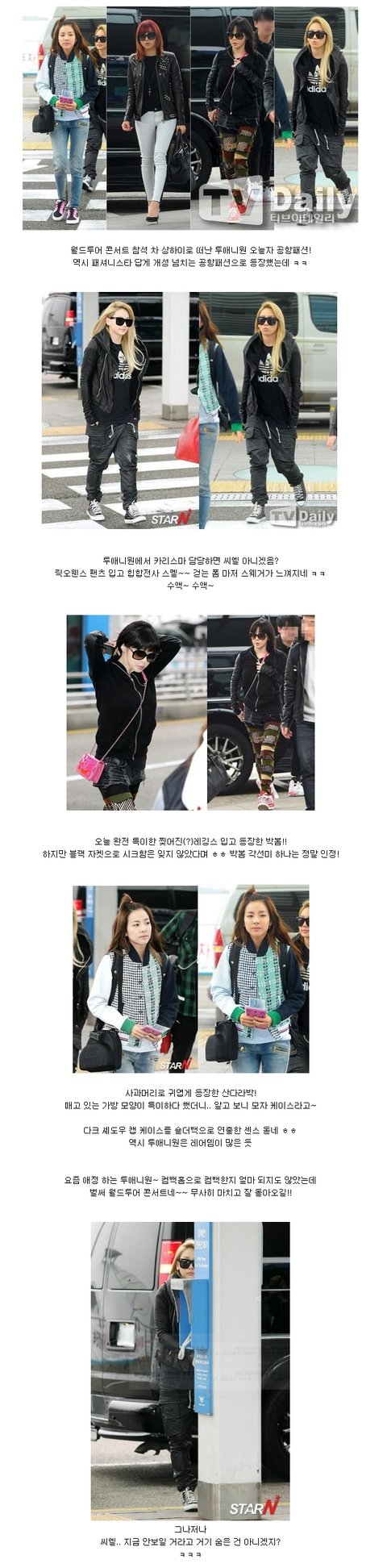 힙합 전사 같은 투애니원 오늘자 공항패션!