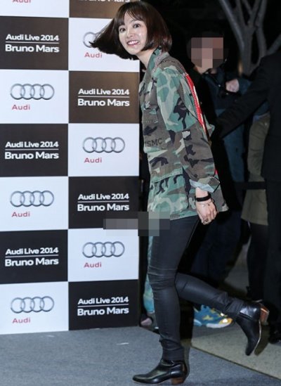 밀리터리 룩을 입고 가죽 스키니에 앵클부츠까지 신었는데