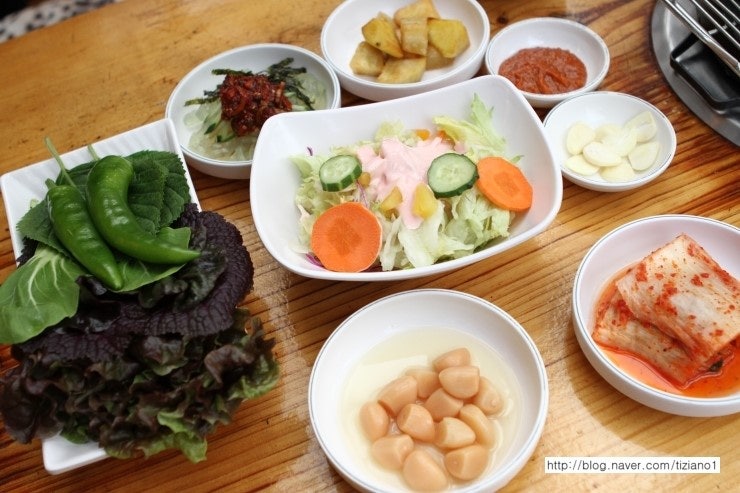 잘 익은 왕갈비에 맛있는 쌈을 싸서 먹으면 정말 좋아용.