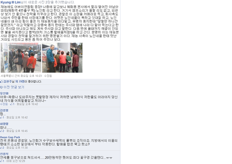 "어버이연합에서 왔냐", "곱게 늙어야지" “저도 늙으면 저리될까 걱정이.. ㅠ“, 등등 해서는 안 될 말들을 하더군요.