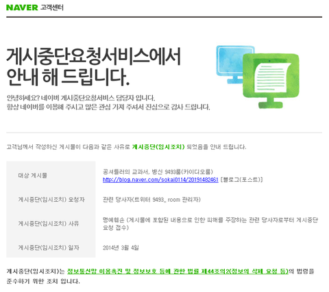무슨 네이버 블로그 글을 게시중단신청까지해ㅋㅋㅋㅋㅋㅋㅋㅋㅋㅋㅋ