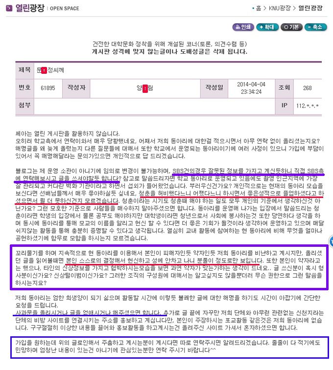 공주대에 공식적으로 사과문 올려야 할 사람은 바로 당신 같은데!!