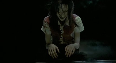 그 반사된 자기모습 뒤에 어떤 여자가 머리카락이 완전 얼굴을 뒤덮고 하얀 나시같은 원피스만 입고 뒷다리를 질질 끌면서 손바닥으로 기어내려오고 있었다는 거야.....