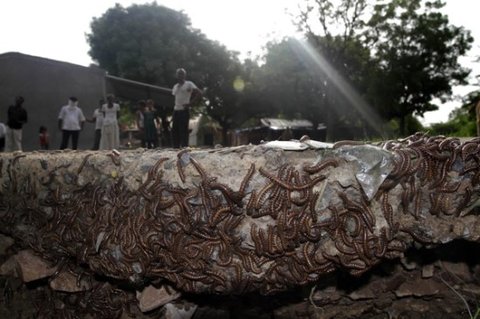 인도 라바드 마을에서 대량의 지네때가 습격했다...