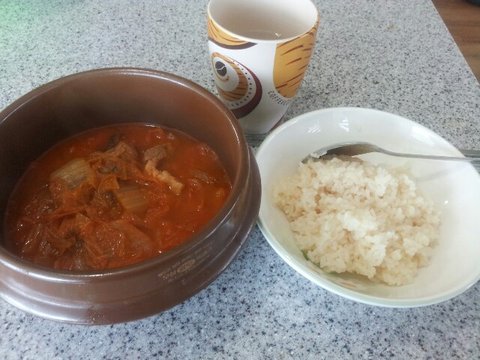 고기향이 나는 김치찌개를 먹을 수 있어요