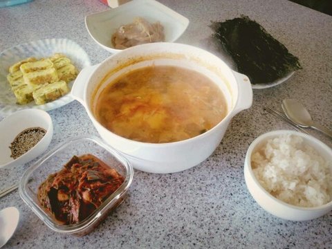 입맛을 돋구거나 맛있어보이거나 하지않은 ...허접한 밥상 (아니 상도 과분함..)