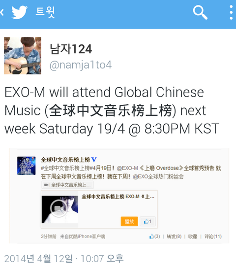 140412 全球中文音乐榜上榜 EXO-M 《上瘾 Overdose》: http://youtu.be/vdjyhW3X9ow
