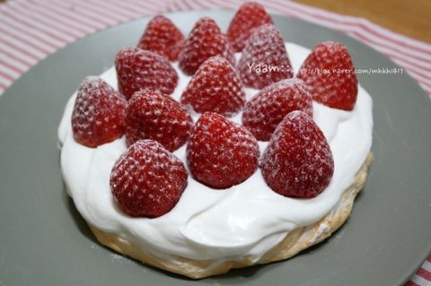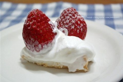 머랭위에 크림올리고 딸기올려 먹는건데요-