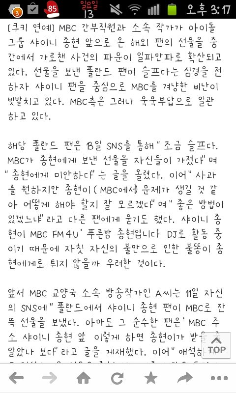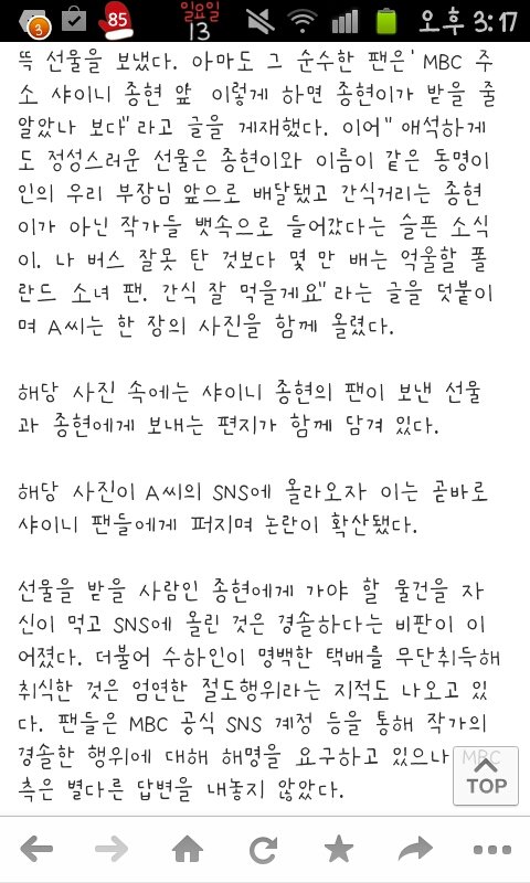 댓글보니까 어떤분이 mbc에전화했는데 mbc에서 선물중에 젤리는남았다고 그걸종현이에게전해준다고했다네요...