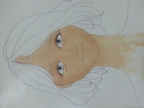 밑그림입니다 저를 모델로 그려봤어요 흐리멍텅한 눈과 낮은코 쳐진눈이죠 사실 저 얼굴도 커요....ㅎ