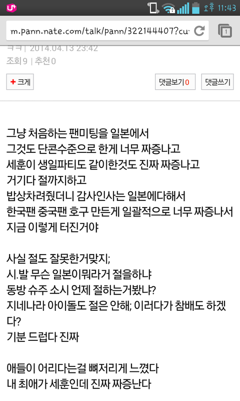 세훈이도 너같은 십노답이 팬인거 별로일듯;;;;;