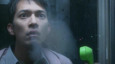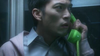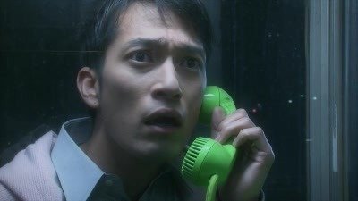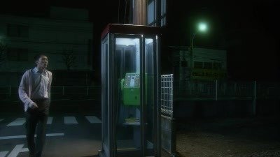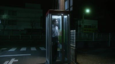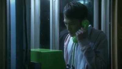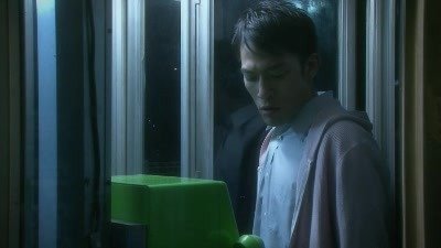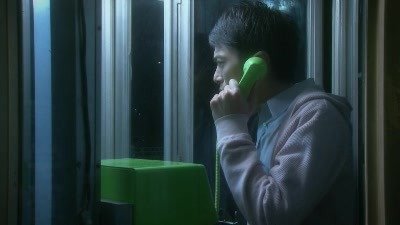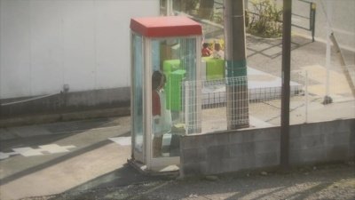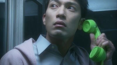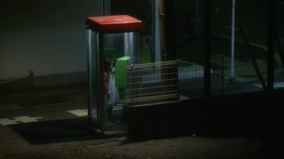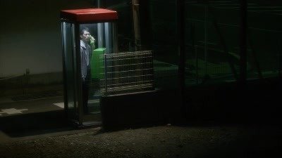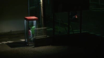 알고보니 이 공중전화 박스 안이네요 남자는 전화를 받습니다