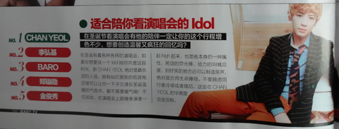 함께 콘서트가고싶은 아이돌 1위 찬열