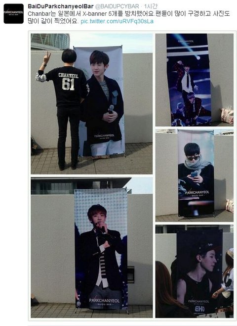 중국팬페이지에서 일본팬미팅때 찬열이 사진 현수막?이랑 사진 찍을수있도록 저렇게 설치하셨나봐ㅋㅋ대박!! 나도 찬열이랑 사진 찍을래ㅠㅠ