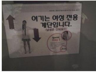 난 여잔데 이건 좀 오버 아님;; 여자분들 배려한다고 계단 주위에 거울 같은 거 설치 안하는 정도까지는 이해하는데 여성전용계단이라니;; 그 공간에 휠체어 다닐만한 길이나 만들지ㅡㅡ