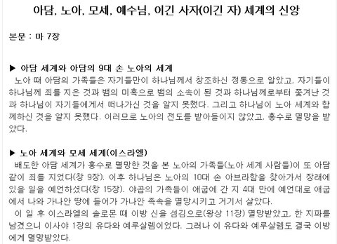 아담, 노아, 모세, 예수님, 이긴 사자(이긴자) 세계의 신앙