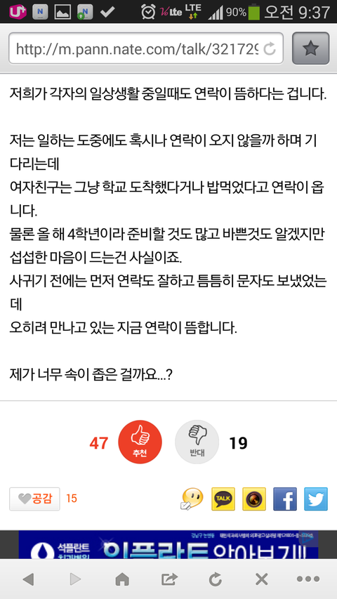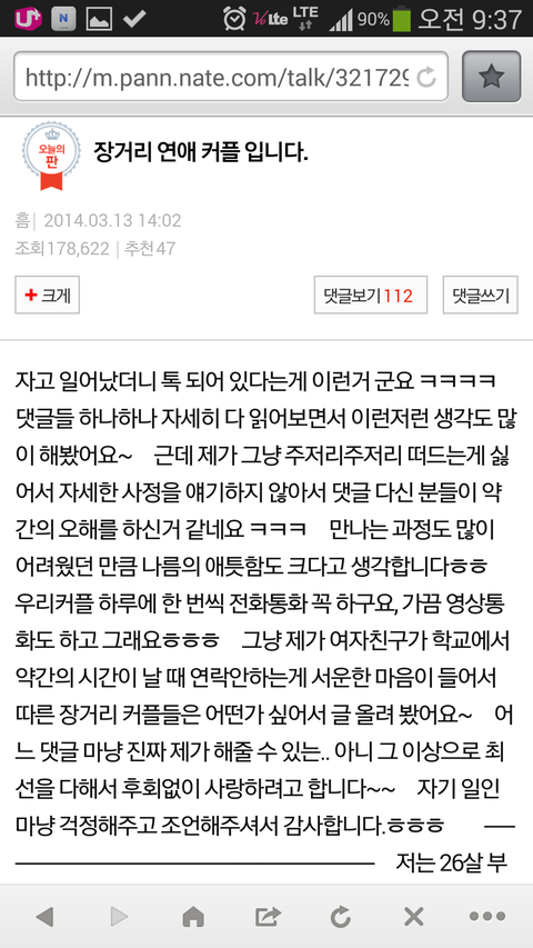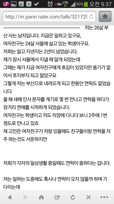 우리커플얘기랑 너무똑같은 글을 판에서봣다고ㅋ