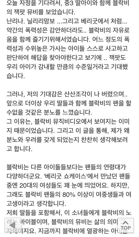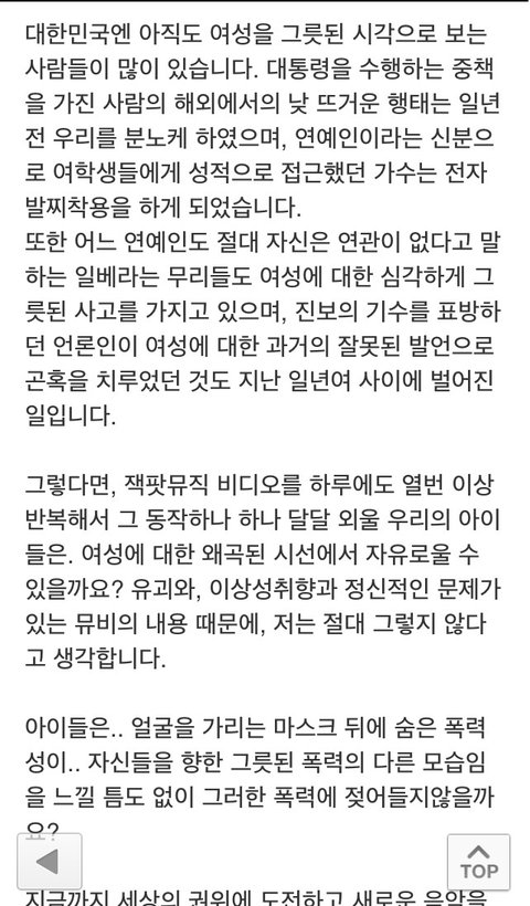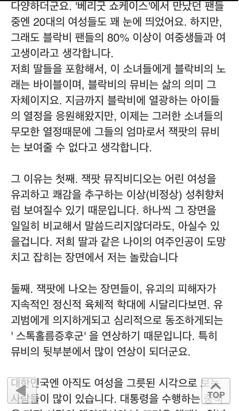 그 분 글 읽어보니까 저는 솔직히 공감이 하나도 안됫거든요. 근데 댓글 보니까 ( 지금은 지우셨더라구요 ) 어떤 다른 분이 요번에 뮤직비디오 청소년유해물질로 판단될것같다고.. 그러시더군요.