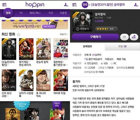 제가 영화 볼 때 잘 애용하는 호핀 어플로