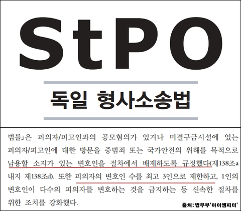 김진태 의원의 주장과 다르게 법무부에서 발간한 '독일 형사소송법'에서는 '국가안전의 위해를 목적으로 남용할 소지가 있는 변호인을 절차에서 배제하도록 규정'하고 있습니다. 무조건 변호인 접견을 막는 것이 아니라 '해당 변호인'만 배제하는 것입니다. 일본과 영국 사례도 들었지만, 일본은 기소 이전까지, 영국은 36시간만 변호인 조력권을 제한하고 있습니다.