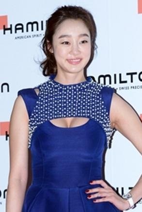최근 행사에서 몸매 부각되는 블루 원피스에