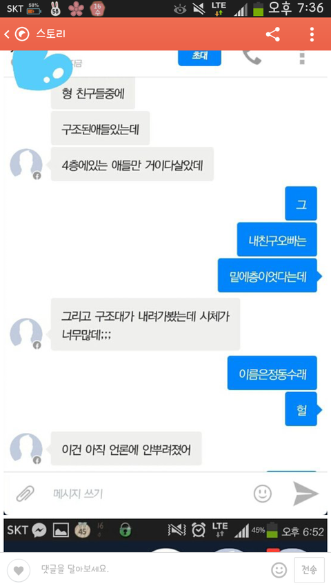 뭐 ? 세명 ㅋㅋㅋㅋㅋㅋㅋㅋㅋㅋ 들뜬마음으로수학여행간사람을 저렇게냅두고 먼저구조된 대리운행사뭐하냐 .. 우리나라왜이래 우리나라진짜나자랑스러웠는데 이게뭐야 다담주수학여행인데 내친구들부모님이 수학여행취소해라고난리