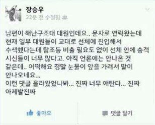 처음에는 전원 구조됬다고 하다가 나중에는 사망자 구조자 실종자들이 나오기시작한다 그리고 페북들의 증언들이 나오기 시작함 배안에 시체들이 많이 보인다고 근데 뉴스에는 사망자는 4..5명으로만 나오고 실종자만 284명이라 보도 되있다 정부에서 입을 막는것일까?