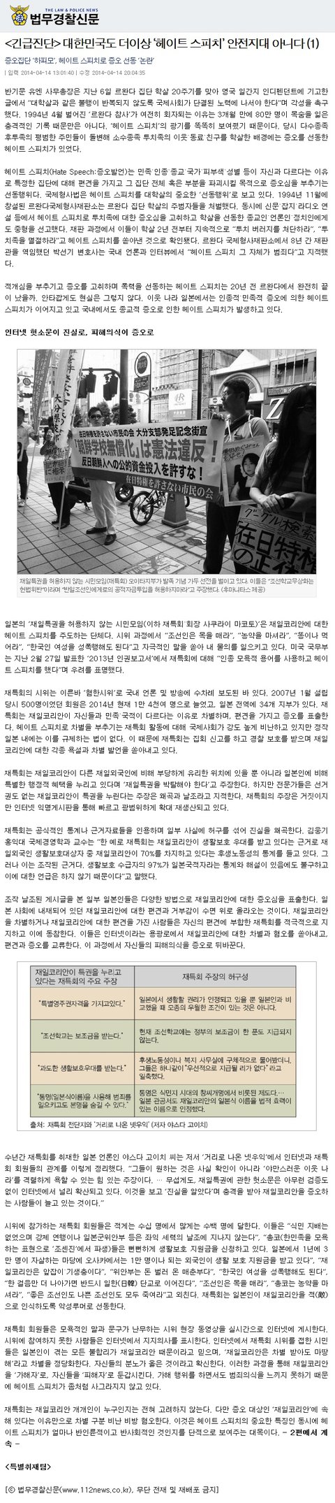 <긴급진단> 대한민국도 더이상 '헤이트 스피치' 안전지대 아니다(1)