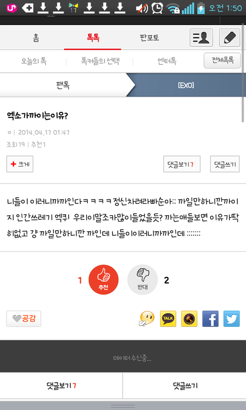 페북에엑소얘기올라오는것도한심