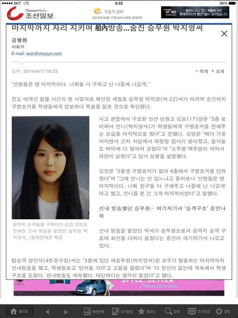 승무원 22살 박지영씨 기사