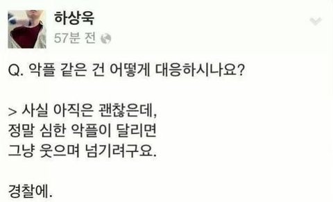 악플과 사생활 침해 등은 엄연히 법적으로 처벌이 가능한 범죄잖아. 그래도 돈 많이 버니까 사랑 많이 받으니까 다 참아내라 하는 사람들한테 그럼 난 역으로 묻고 싶어.