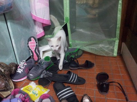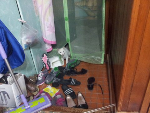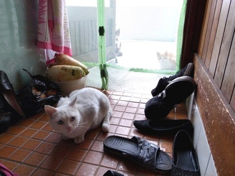 백설이는 처음 나타났을때도 현관안으로 잘 드나들었음