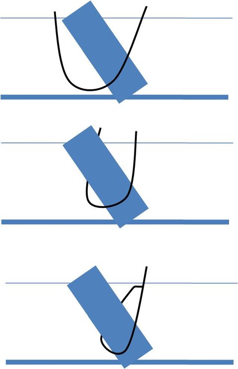 조수가 세다면 임시로 배에 줄을 걸고 잠수부가 줄을 따라 배 중간까지 접근.