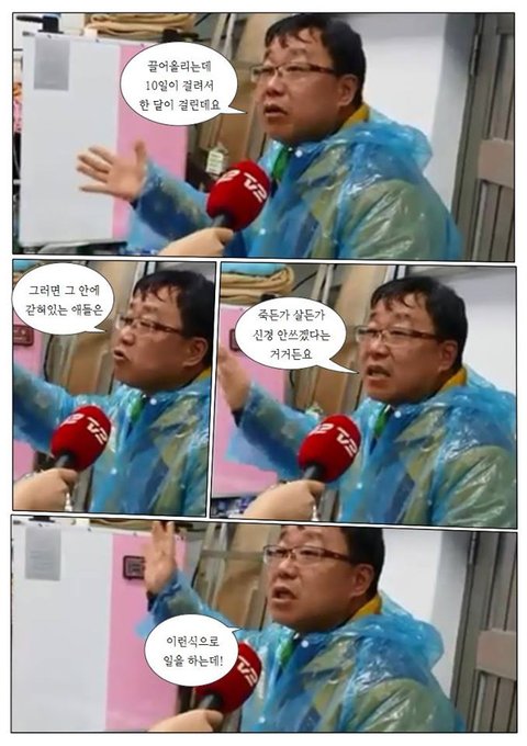 한마디로말해 언론에는 구조하는중최선을다하는것처럼 얘기하지만 사실상그렇지않다는거..