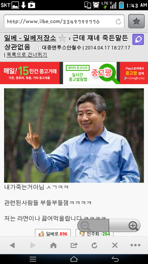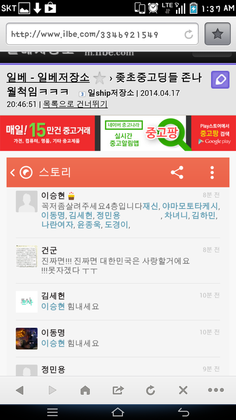 일베회원 생존자인척 sns에자작하네요!!!!!!!!!