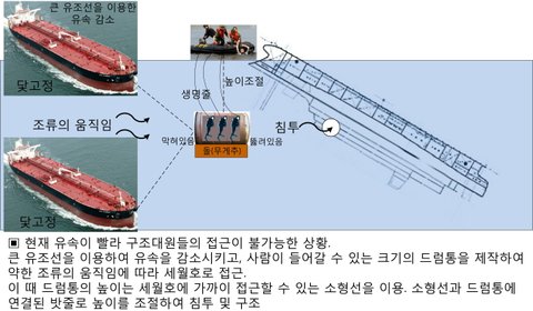 유속이 빨라 계속 구조작업이 중단되는 것 같아서 구조방법을 제안합니다.