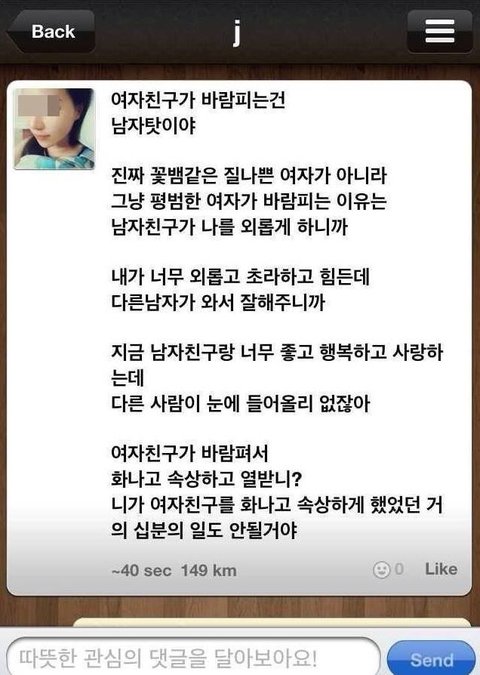 솔직히 남자친구로서 질투도 나고, 누군지 궁금하기도 하고, 또 무슨 내용의 대화를 나누는지 약간의 화도 납니다.
