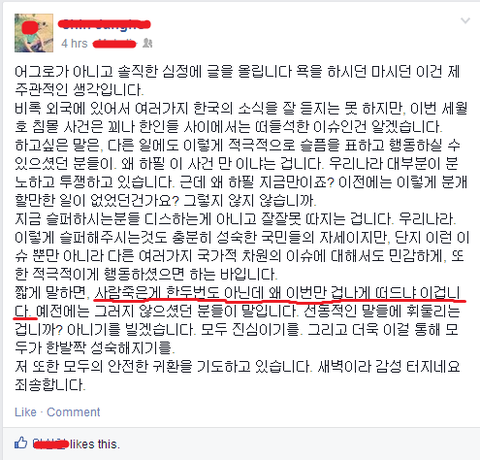 성숙한 시민의 자세를 운운하는 사람이 "사람 죽은게 한두번도 아닌데 이번만 겁나게 떠드냐" 라는 발언을 하네요... 정말 이 사람 뇌라는게 있는 사람인지가 의심스럽네요.