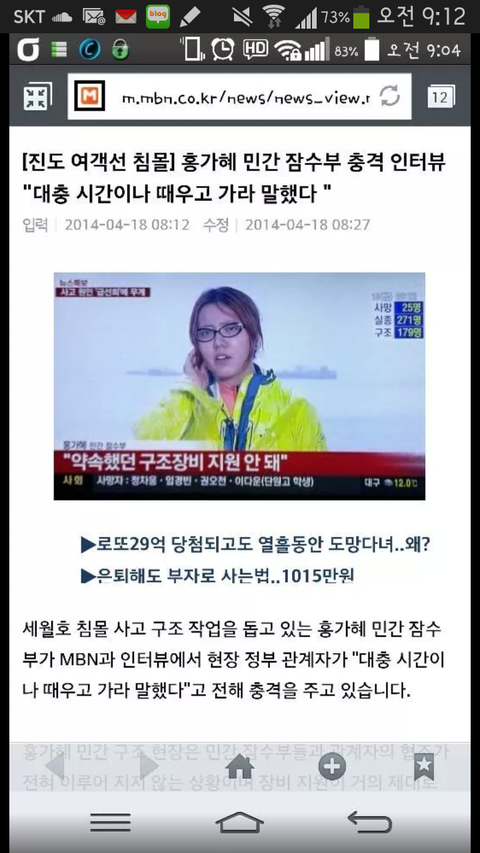 너희가 직접 판단해. 근데 목격자들 말이 모두다 같다면 사실인거 아니야...? 하지만 24시간이란 시간이 지났으니 이젠 소용없는거겠지.. 저 홍가혜 잠수부 끝쯤엔 격분해서 욕 나오려고 하면서 인터뷰 한다..