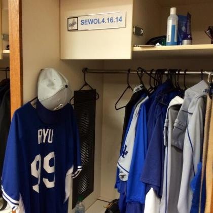 이번 세월호 사고때문에 추모하려고 모자나 유니폼에 적으려고 했지만 MLB 규정상 불가능해서 락커룸에 자기번호 99 대신 저렇게 세월호 이름과 사고날짜를 적어놨다고 한다.
