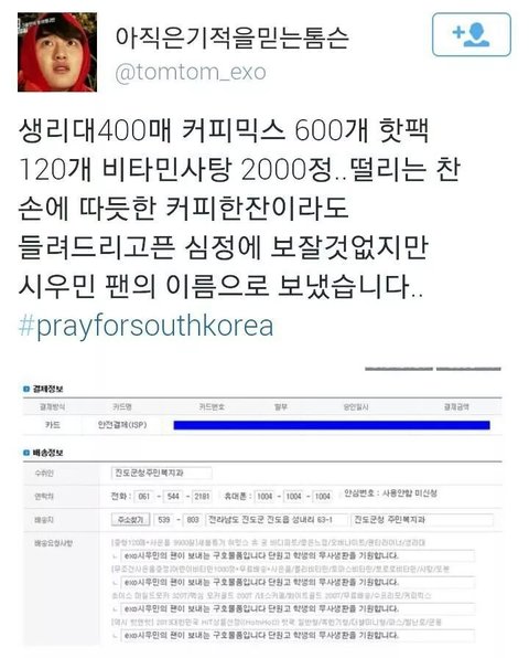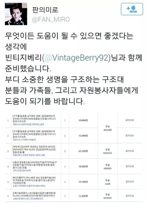 지금 팬페에서 구호물품 보내나봐